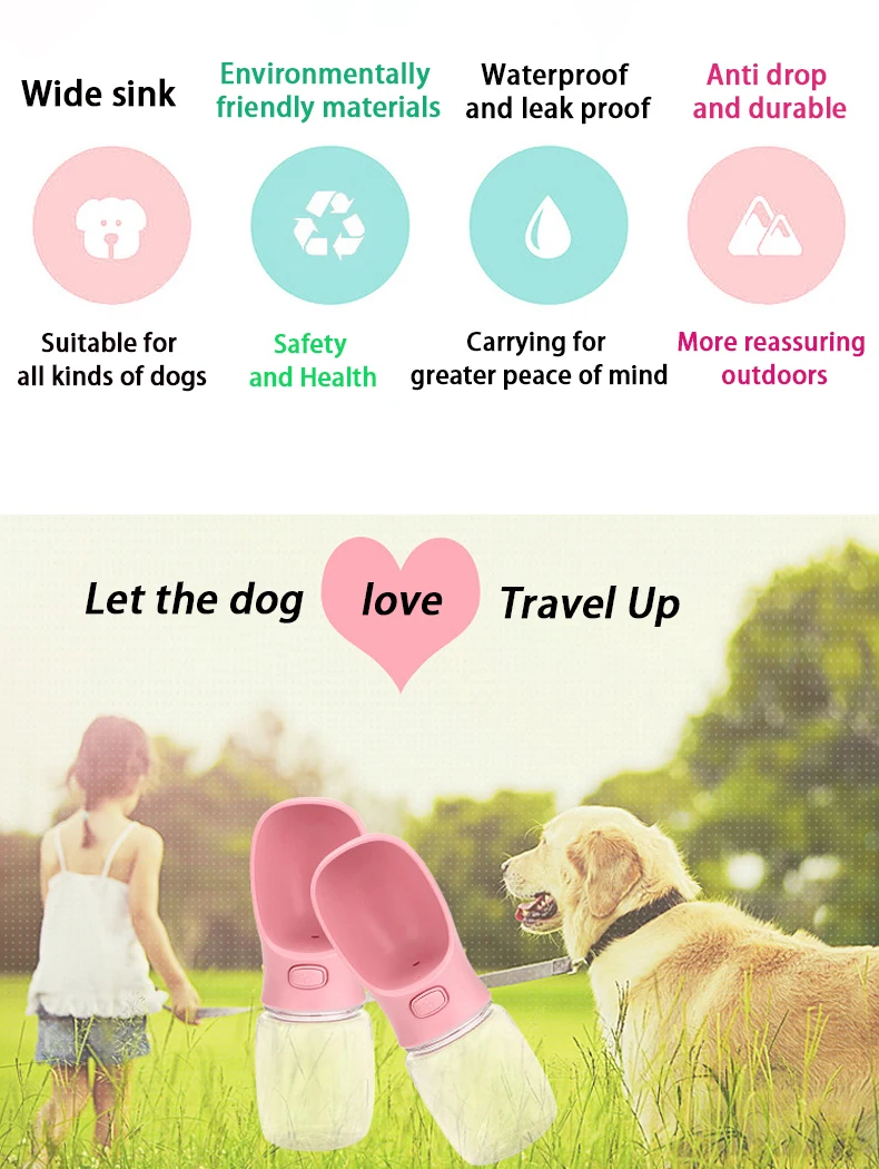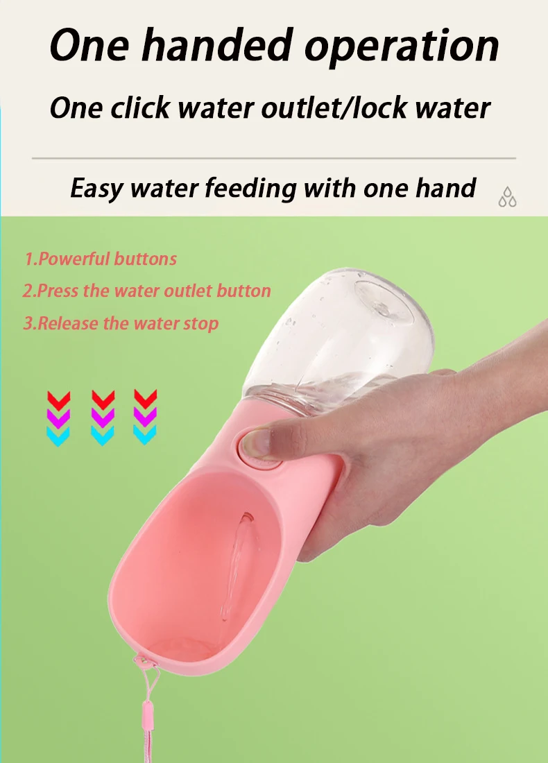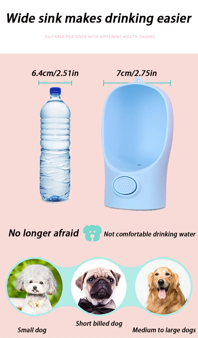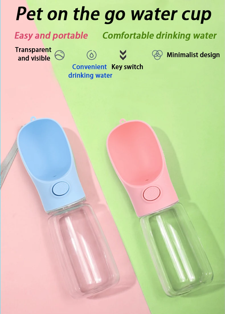 350ml 450ml Portable drinking water bottle for pets dogs and cats, food grade materials, detachable perfect for outdoor with lanyard carrying loop 350ml 450ml sizes