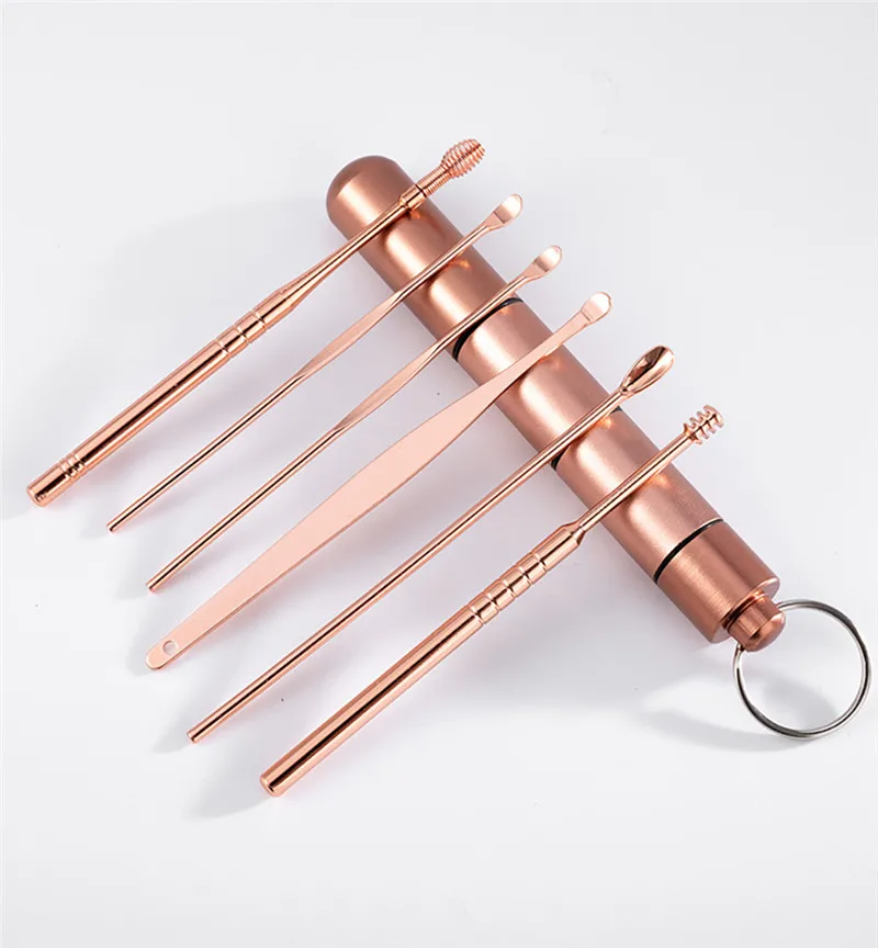 6Pcs/set Ear Wax Pickers Stainless Steel Spiral Earpick Wax Remover Curette Ear Pick Cleaner Ear Spoon Care Ear Cleaning Tools