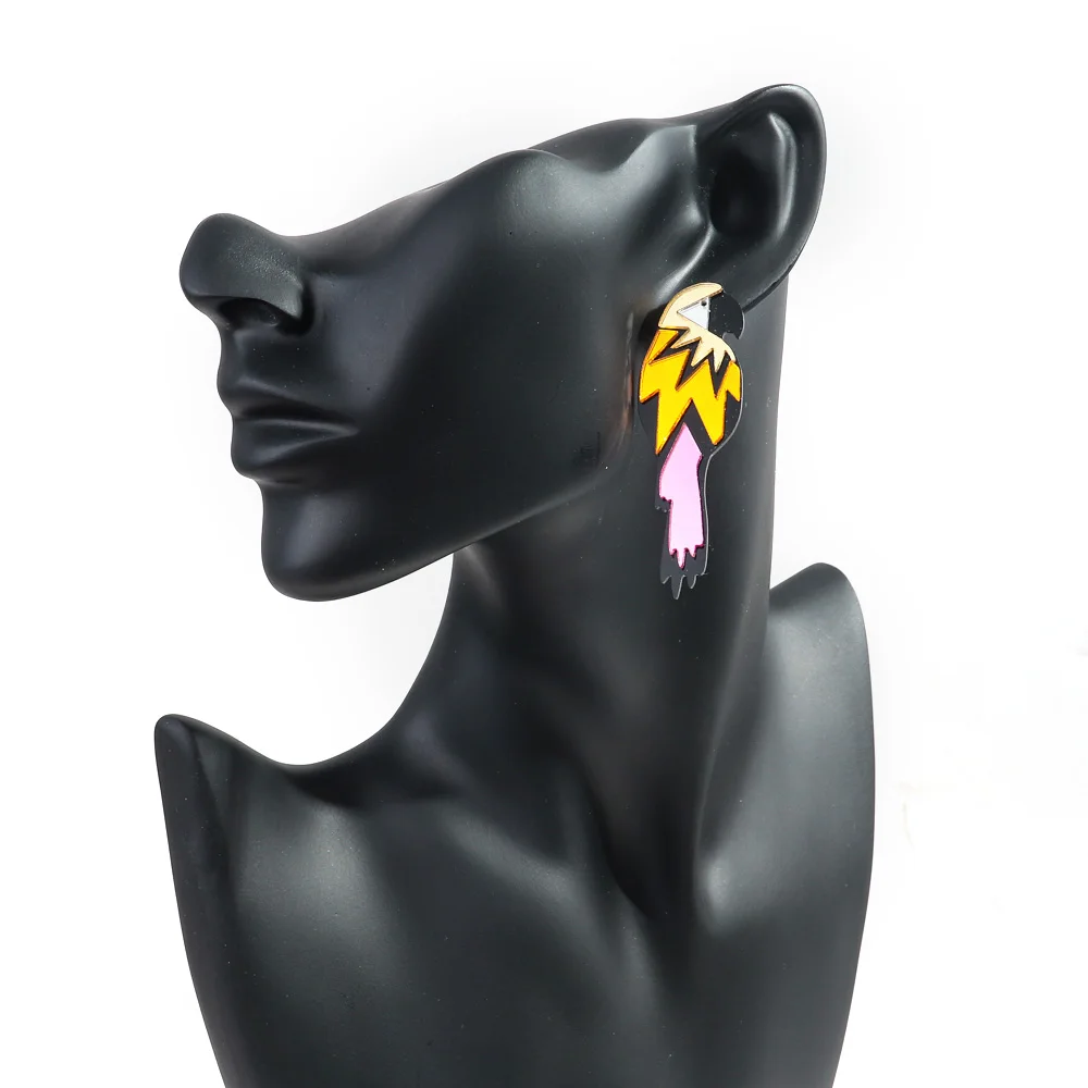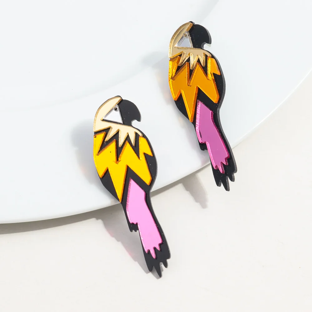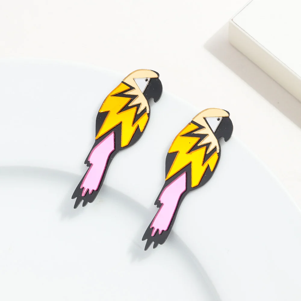 FishSheep Funny Acrylic Spliced Parrot Dangle Earrings for Women Girls Lovely Animal Birds Drop Earrings Fashion Jewelry Gifts