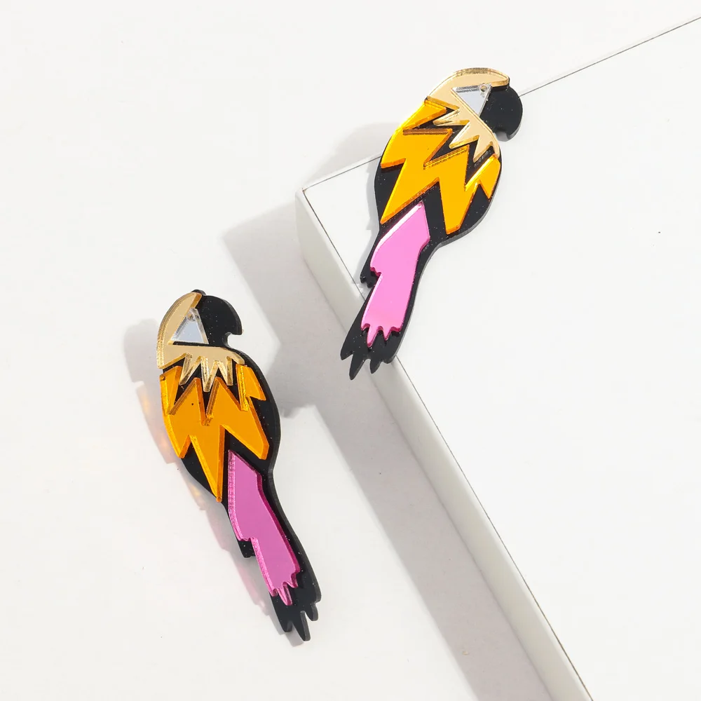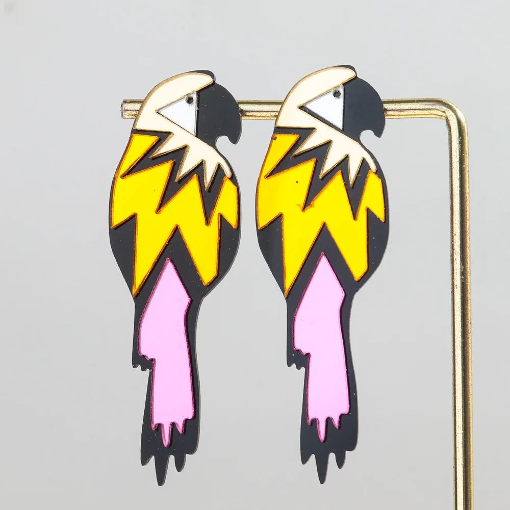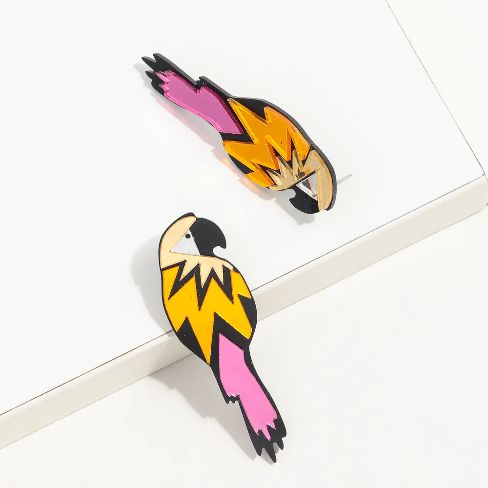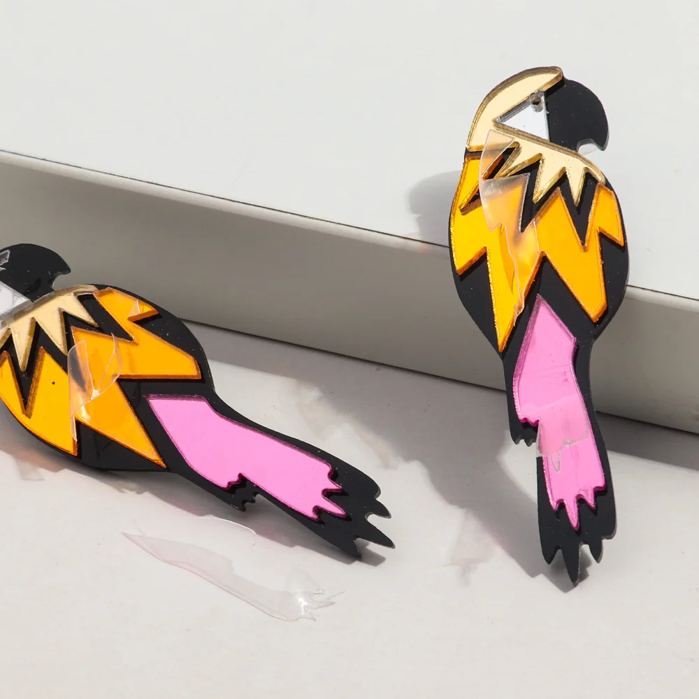 FishSheep Funny Acrylic Spliced Parrot Dangle Earrings for Women Girls Lovely Animal Birds Drop Earrings Fashion Jewelry Gifts